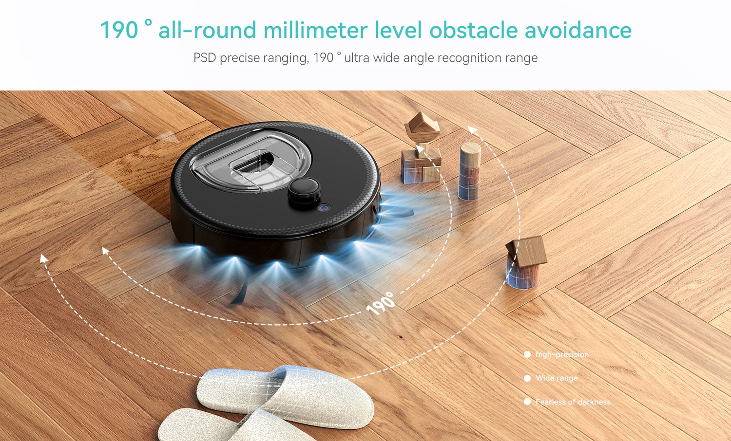 ใUnique Freemove Invention Patent TechnologyใThis M330 robot vacuum cleaner has a built-in enhanced anti-collision infrared sensor, which can effectively detect the 720 degree fuselage environment. Effectively avoid getting stuck and falling from a height.